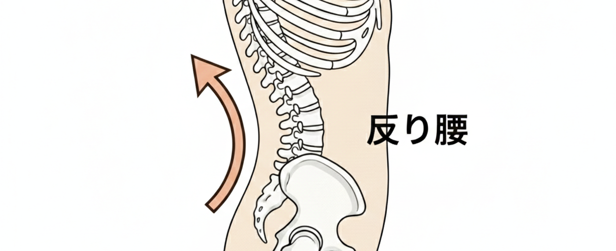 反り腰は、骨盤が本来の位置よりも前に倒れ(前傾)、腰のカーブが極端に強くなっている状態を指します。主な原因は以下の通りです。